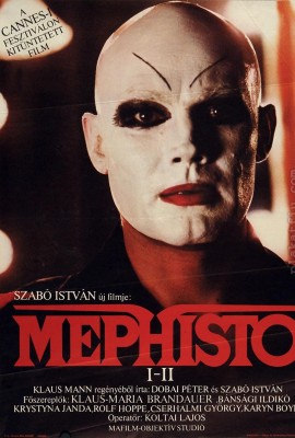 Hendrik Höfgen, a tehetséges fiatal színész ambícióit nem elégítik ki a hamburgi színházban játszott szerepek. Berlinbe szerződik, hogy eljátszhassa élete nagy szerepálmát, a Mephistót. Mérhetetlen becsvágy fűti, és sikerei miatt észre sem veszi, miként keveredik bele egyre jobban a politikába, és köteleződik el egyre inkább a nácik mellett… Szabó István 1981-ben Oscar-díjat nyert filmalkotása díjak és rangos jelölések sorát kapta. Cannes-ban legjobb forgatókönyv- és Fipresci díjat kapott, valamint jelölték az Arany Pálmára is. Elnyerte a David di Donatello díjat, valamint a Bafta gálán jelölték a legjobb idegennyelvű film kategóriában.